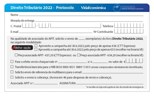 Tal como em anos recentes estabelecemos um protocolo com a Editora Vida Económica, que permitirá aos Associados da APIT a aquisição …